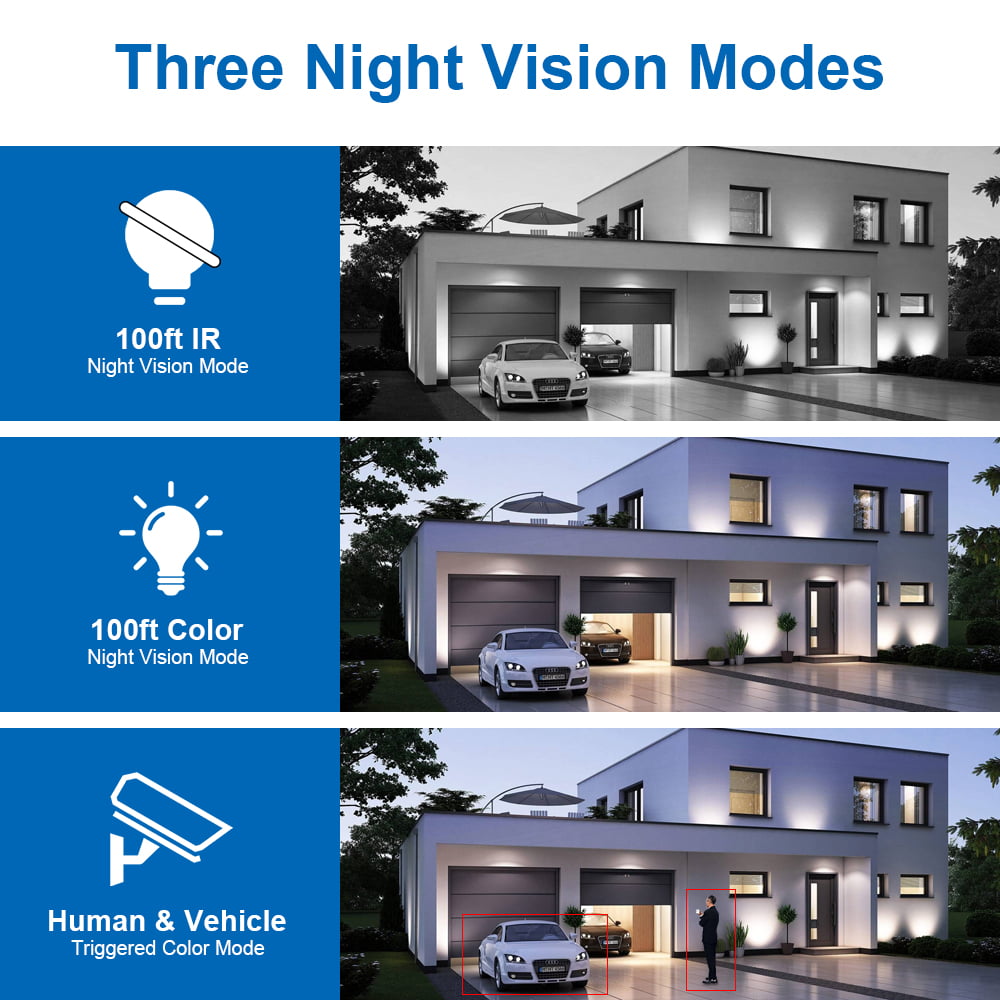 Smart Dual Illumination - IR mode, white light turns on motion detection/