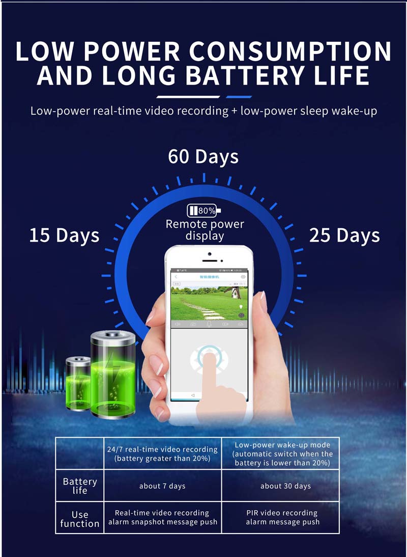 • Built-in high capacity Li-ion battery, support 7days/24hours