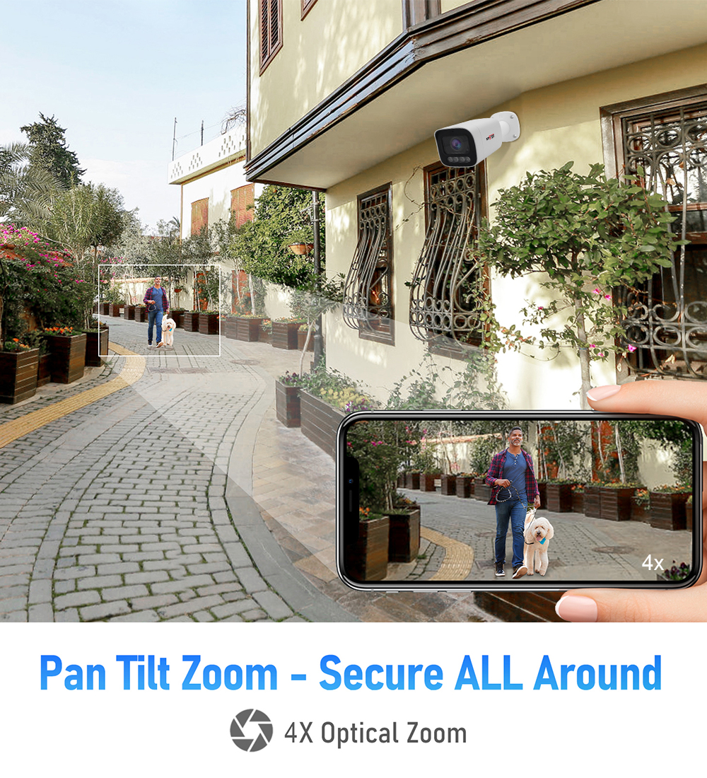 2 Way audio Intercom 8MP Outdoor Full time Color Colorvu 4X Motorized Zoom Security POE Camera